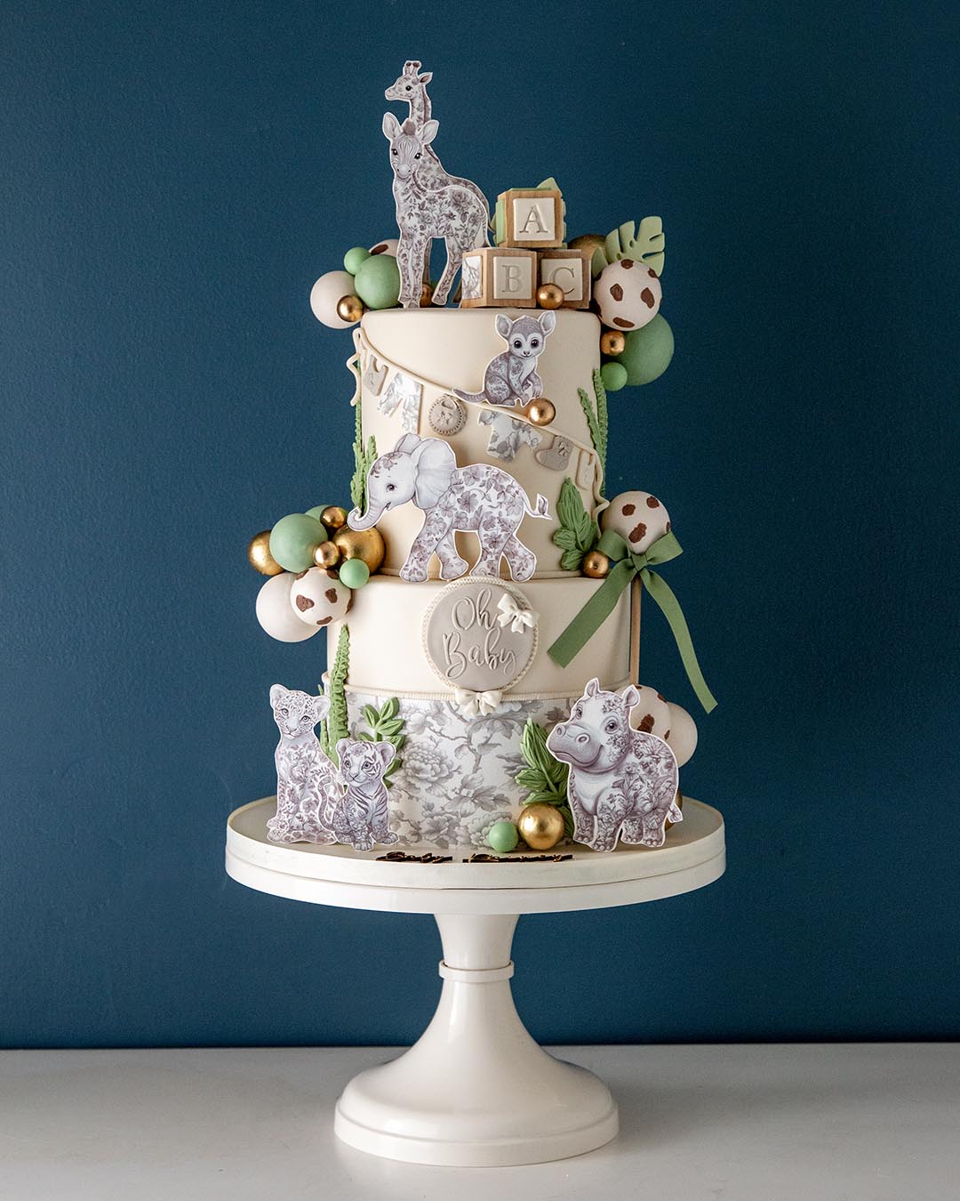Bring the wild to your celebration with our Oh Baby Safari cake — a charming cake designed for baby showers and gender reveals that deserve a touch of adventure and elegance.