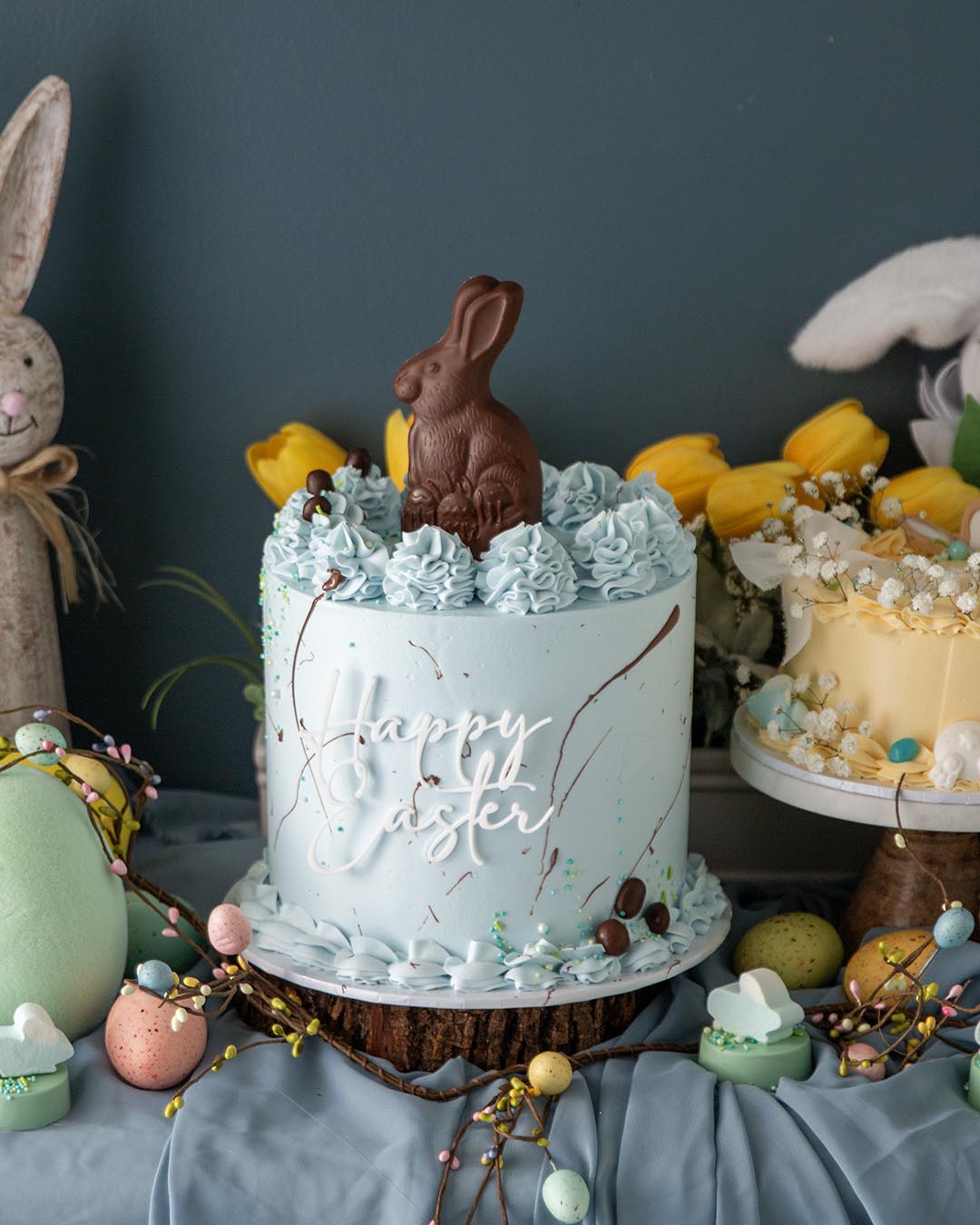 Celebrate the sweetness of spring with our Robin’s Egg Easter Bunny cake. This charming design features soft pastel blue buttercream, delicate piping, and a classic chocolate bunny nestled on top—bringing a nostalgic Easter touch to every celebration.