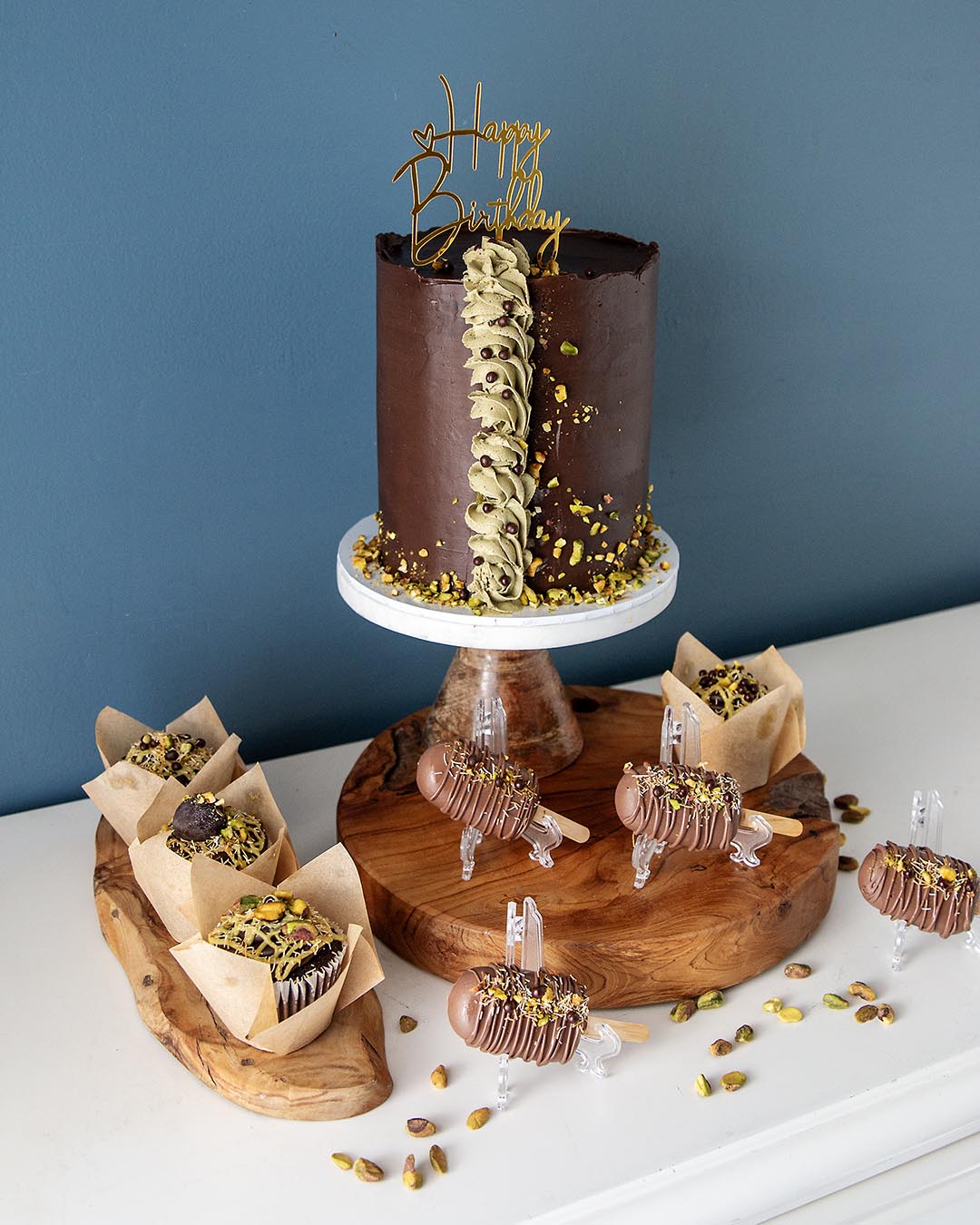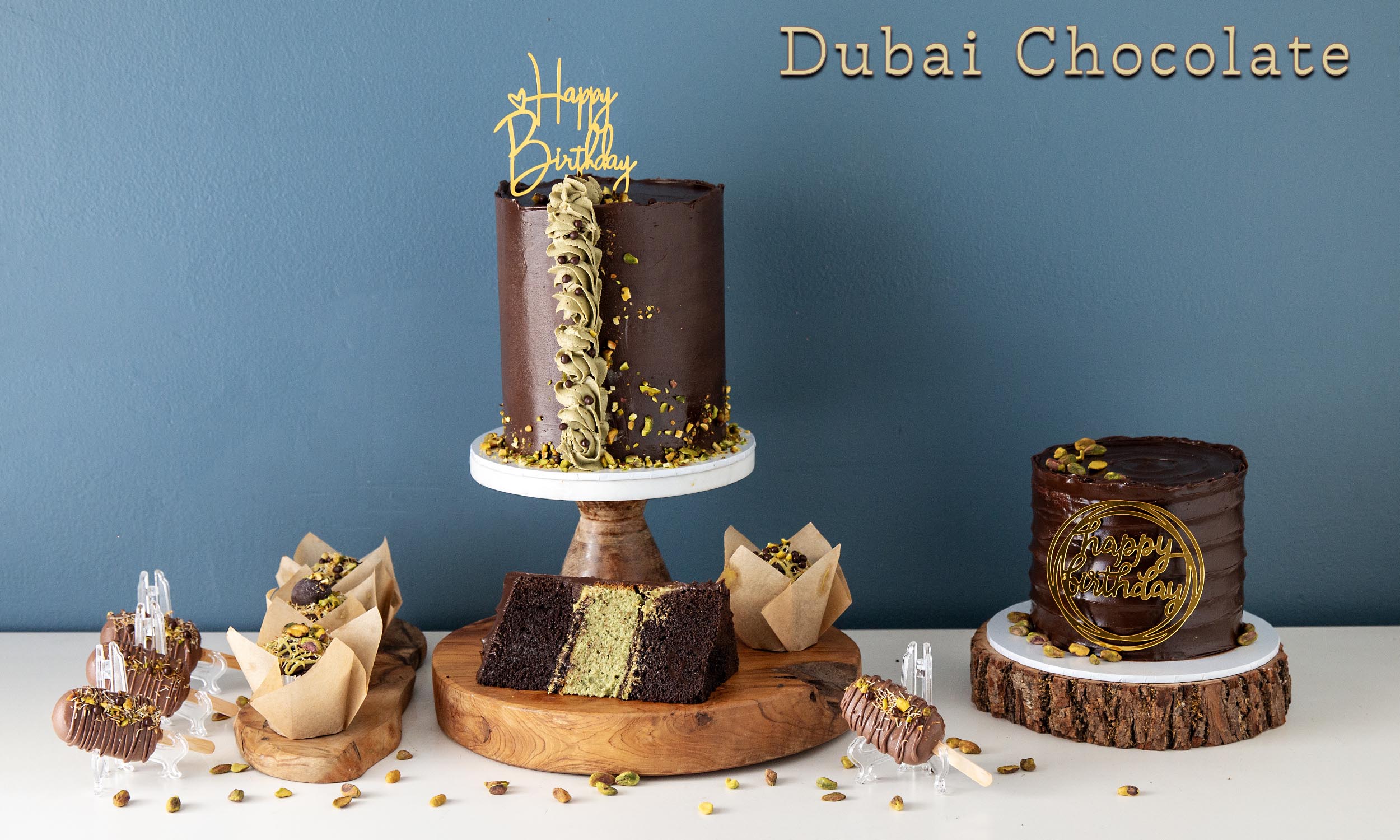Indulge in the Dubai Chocolate Cake– a luxurious line of handcrafted cakes, and optional cupcakes, and cakesicles infused with elegance, rich flavors, and a touch of golden opulence.