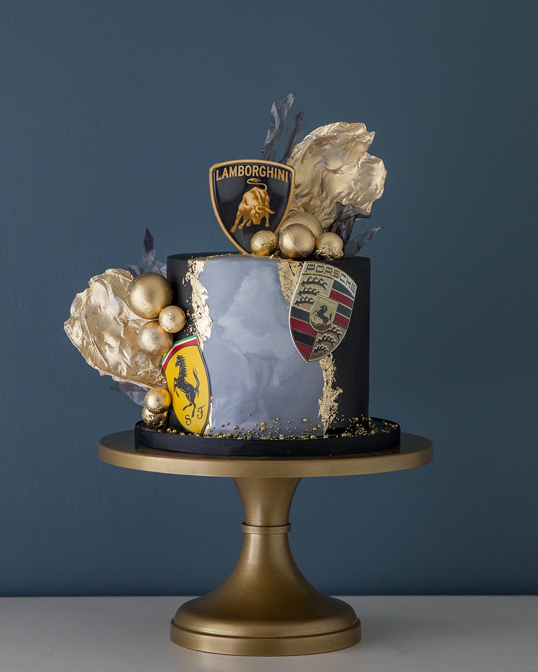 Where speed meets sophistication — Turbo Luxe is designed for those who live life in the fast lane. Draped in a deep charcoal marble with metallic gold accents, this cake radiates high-end power and precision. Sculpted gold textures, polished spheres, and a sleek silhouette come together to create a statement piece worthy of any luxury celebration.